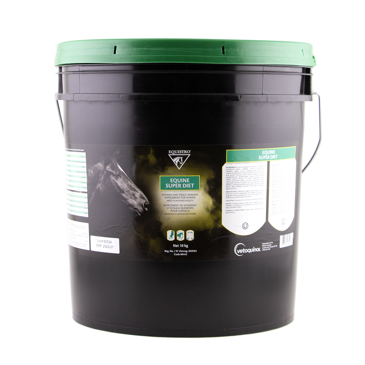 Pelletized highly concentrated vitamin-trace mineral supplement for mixing in the feed of pregnant mares, growing foals, race horses, saddle horses, show horses, work horses and ponies.